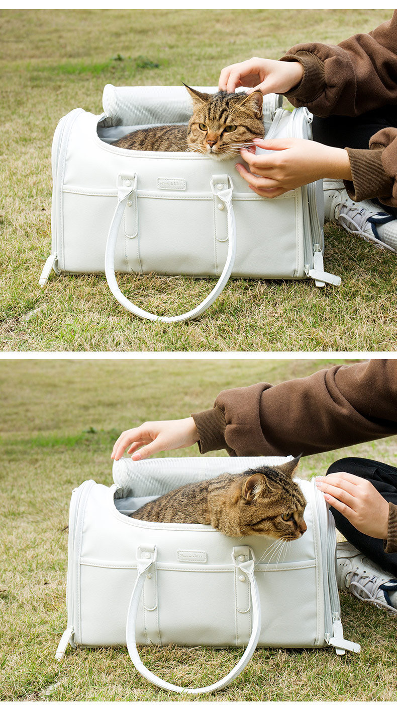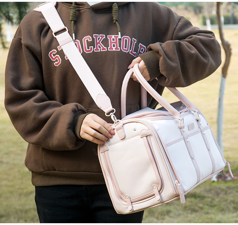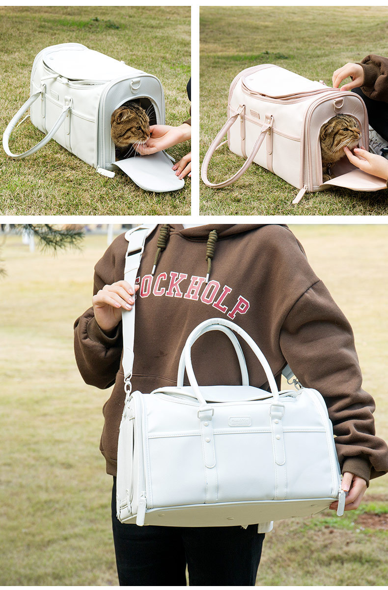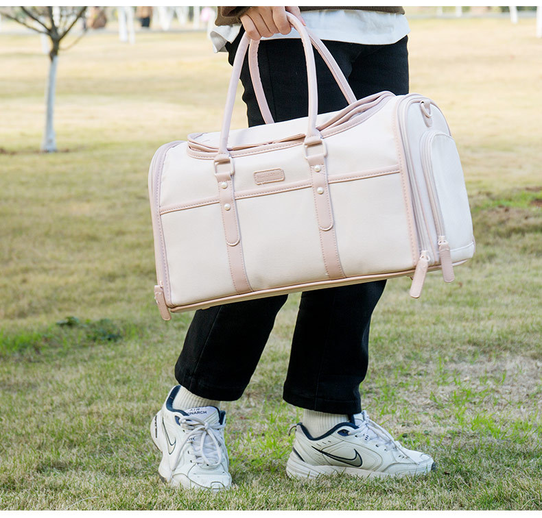 Korean New Pink High-End Pet Bag Portable Leather Pet Bag Breathable Foldable Pet Bag
