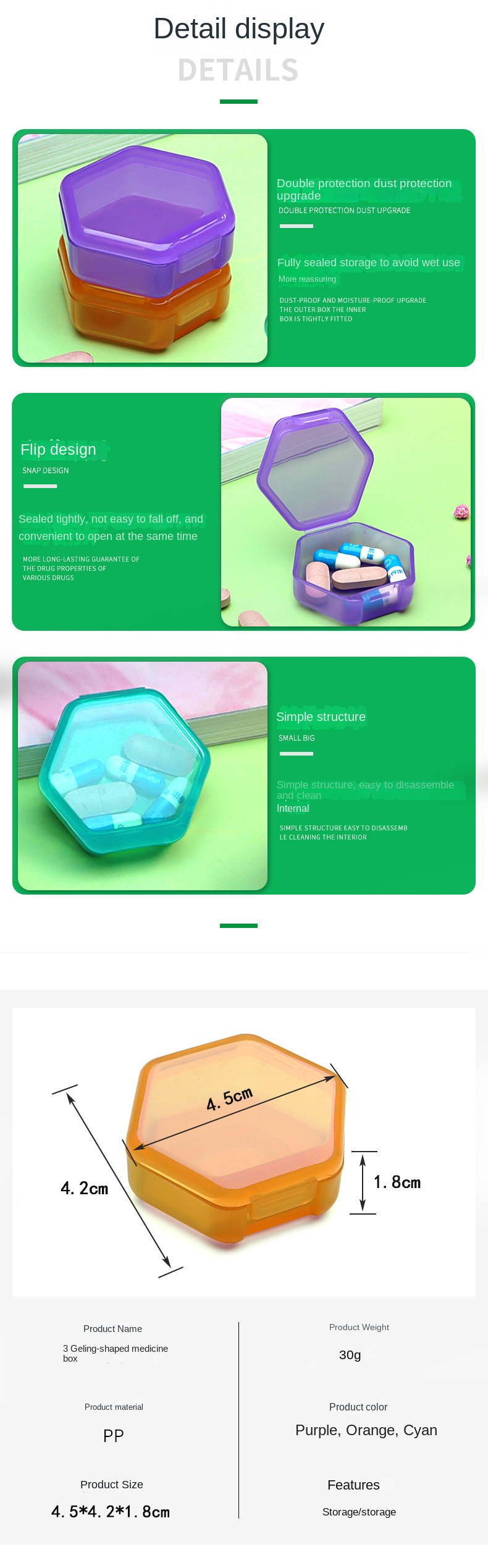 Mini 3-Grid Diamond Medicine Box, Portable and Dustproof Plastic Box for Drug Storage