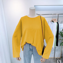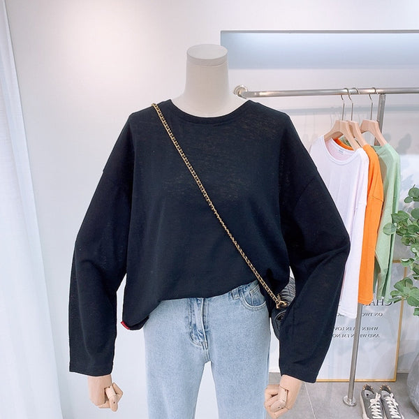 Women's Korean Style T-Shirt with Floral Print, Long Sleeve, Loose Fit, Plain Color