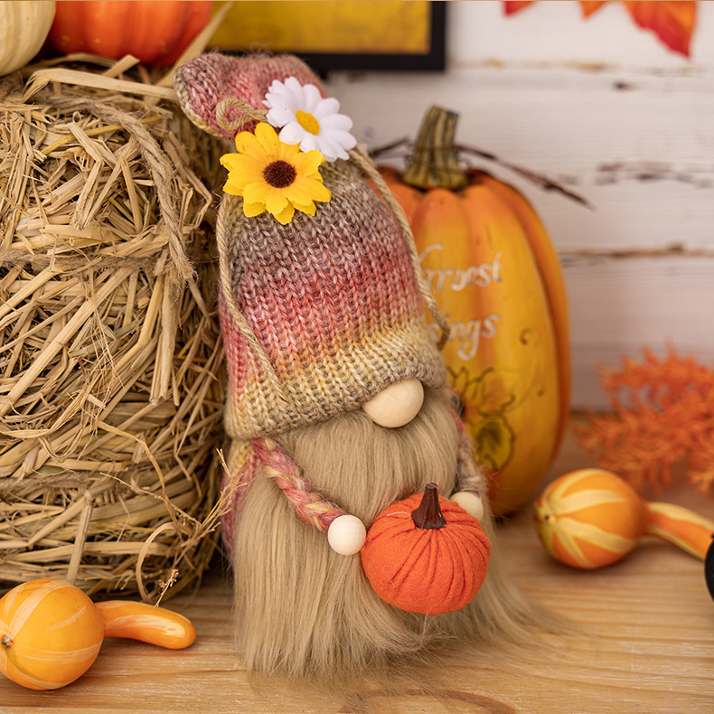 New Harvest Season Thanksgiving Decorations with Beaded Bonnet and Pumpkin