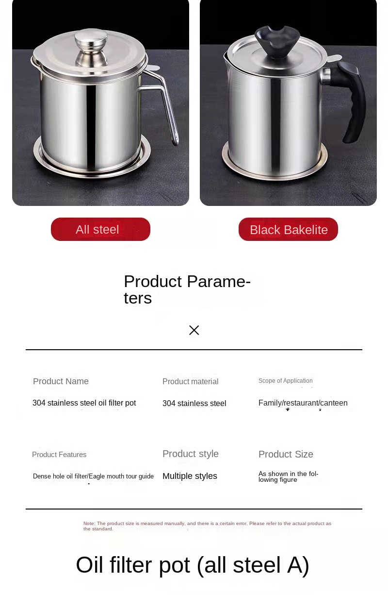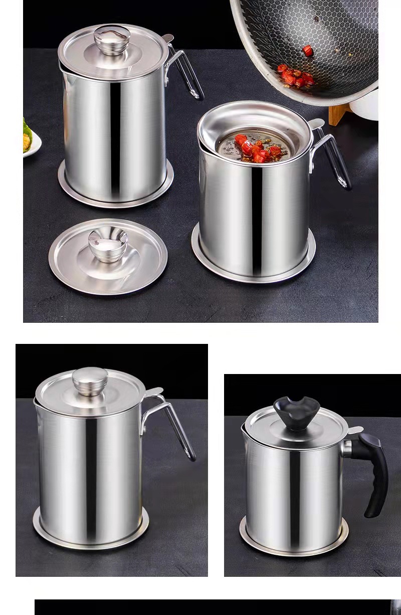 304 Stainless Steel Oil Can with Lid Filter for Home Kitchen Use