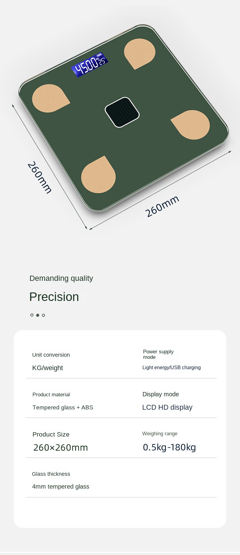 Smart Body Fat Scale with 180KG Max Weight, 7 Battery/USB Charging, and Other Functions
